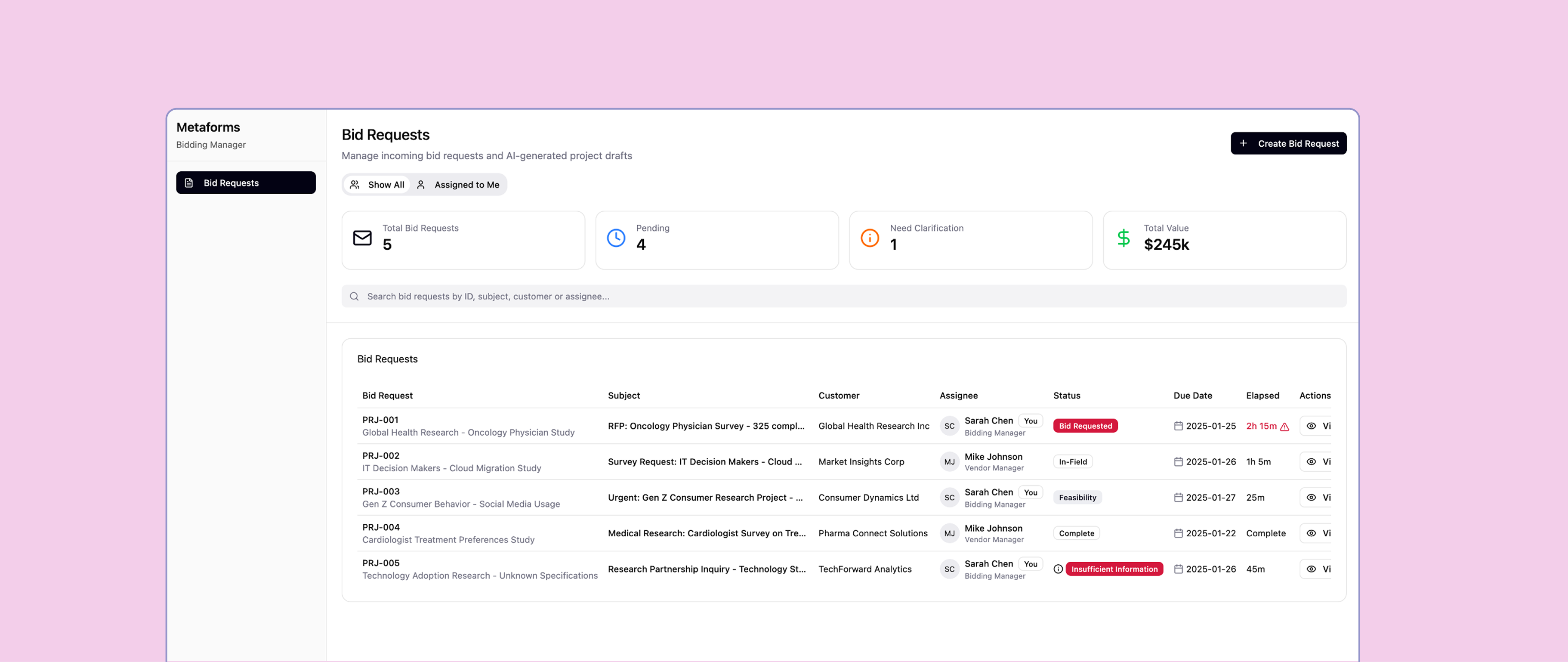 Bidding management with Metaforms.