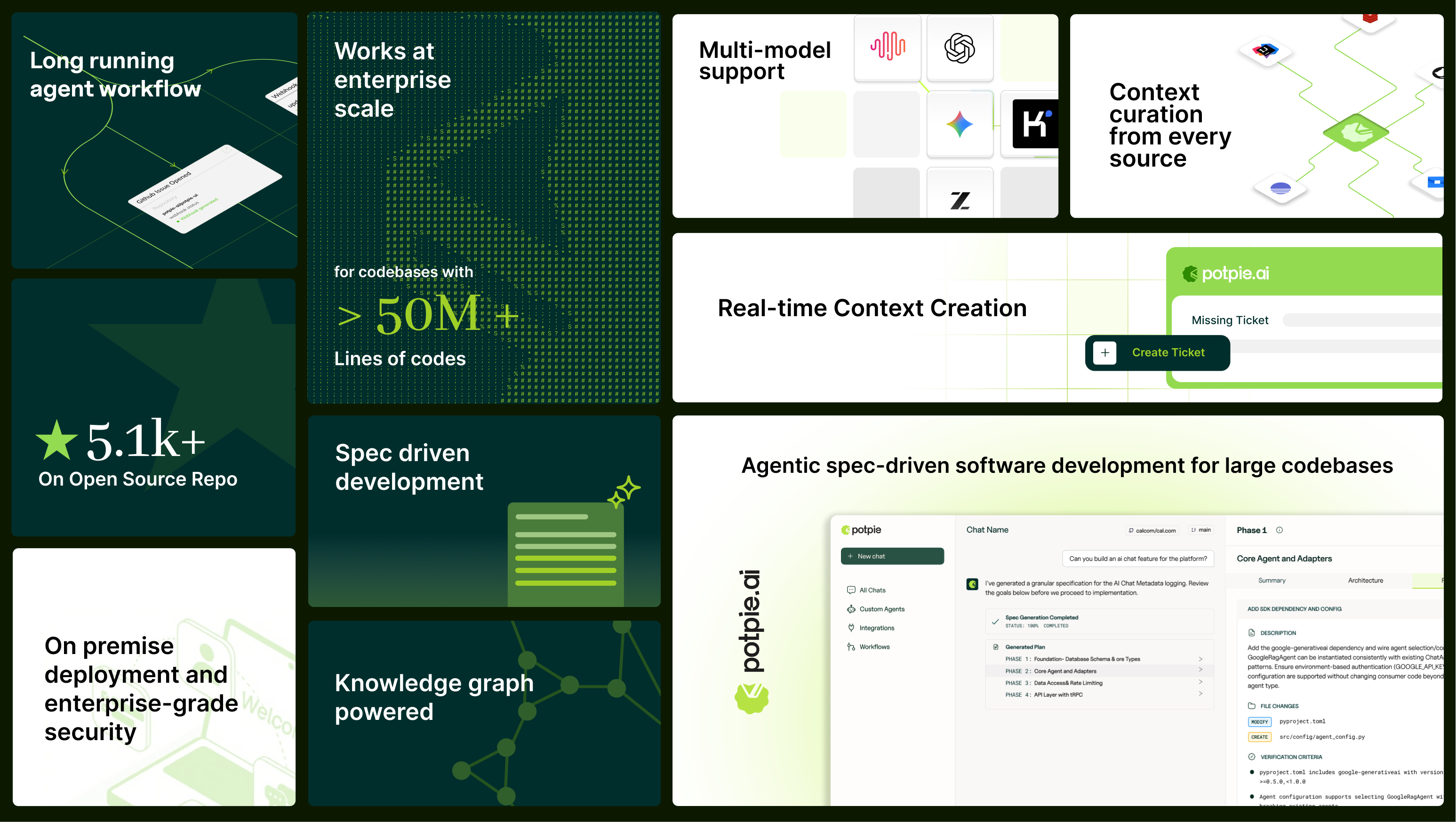 Potpie addresses this by unifying context across the entire engineering stack and enabling spec driven development. It pulls in information from source code, tickets, logs, documentation, and reviews, links it together, and makes it usable by agents.