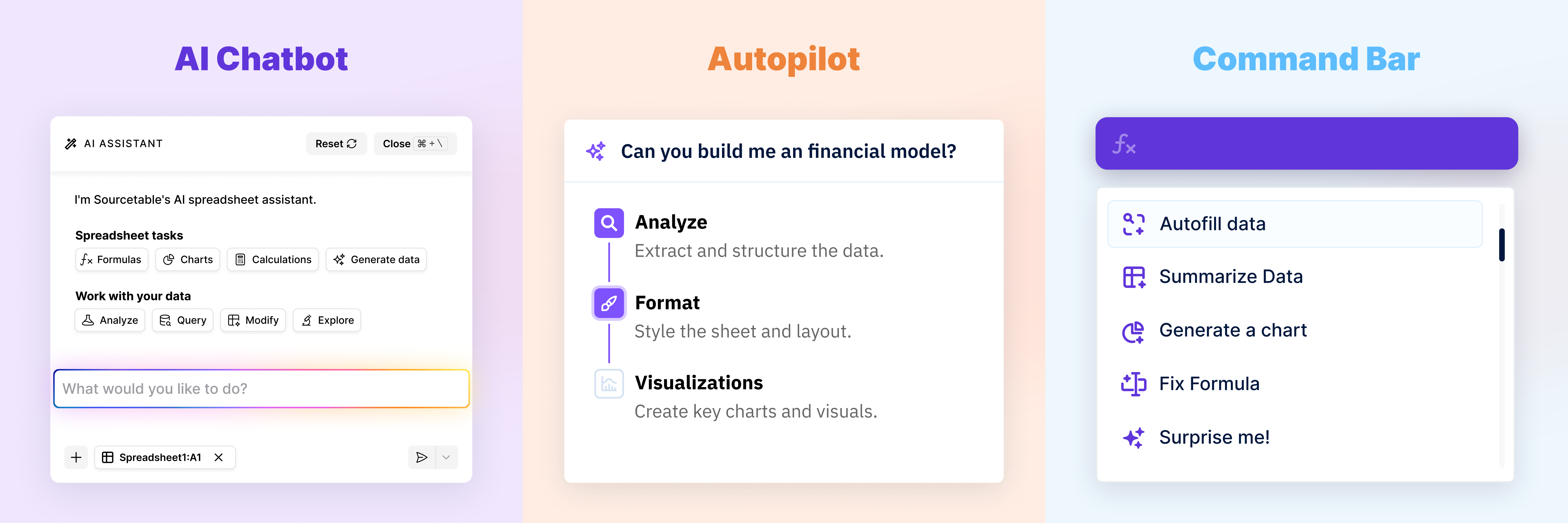 Sourcetable is an AI spreadsheet and data analyst that makes it easy to analyze Excel and CSV files, create charts and graphs, clean data, answer questions, and 10x your spreadsheet productivity. Sourcetable is a leader in AI-enabled spreadsheet automation.